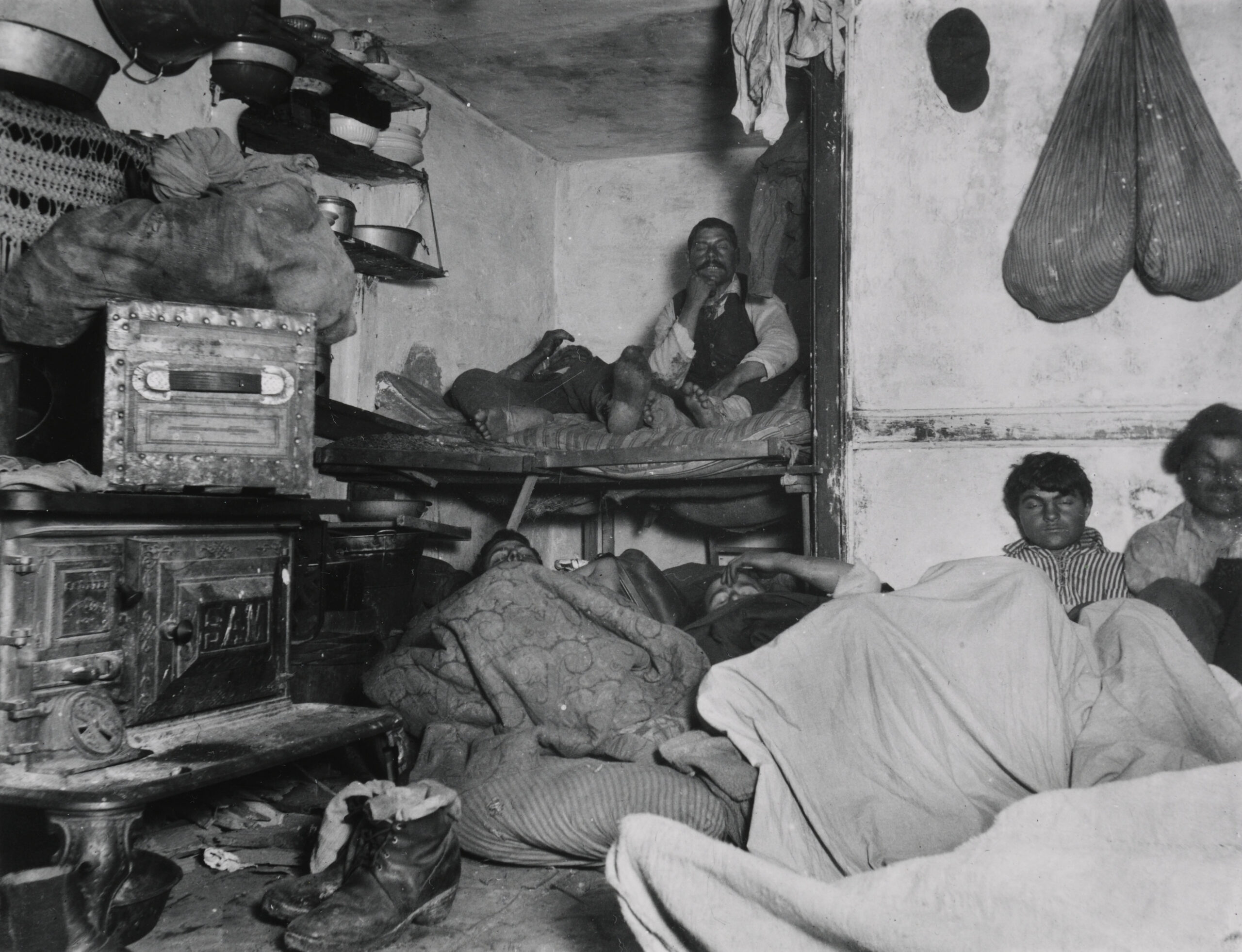 How the Other Half Lives is an 1890 work by Jacob Riis that uses photographs and accompanying descriptions to shed light on the poverty and squalor that developed within metropolitan America–and especially New York City–around the turn of the twentieth century. The Second Industrial Revolution saw the beginning of the Gilded Age, as tycoons and business oligarchs sought to use their capital to influence domestic policy and led to one of the great wealth disparities in American history. During this period many immigrants and others from the surrounding country flocked to cities to work in the factories in the hope of earning higher wages than were possible elsewhere. This rapid influx of population, however, strained the resources of the cities and frequently led to people living in cramped, unhygenic situations.