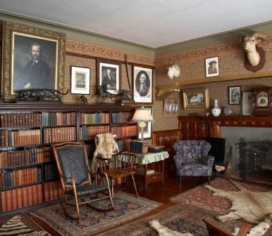 Two “libraries” in particular can be seen to represent Roosevelt as a reader. The first is the library one can still visit today at his home, Sagamore Hill. The home is very much as Roosevelt left it, preserved until his wife’s death in 1948 and later turned over to the care of the National Park Service. Roosevelt’s Sagamore Hill library was inventoried on his death. Additions were made during the succeeding years of Edith Kermit Carow Roosevelt’s life, and a more recent inventory of books at Sagamore Hill reflects these changes. The house still holds thousands of books amassed during Roosevelt’s lifetime.