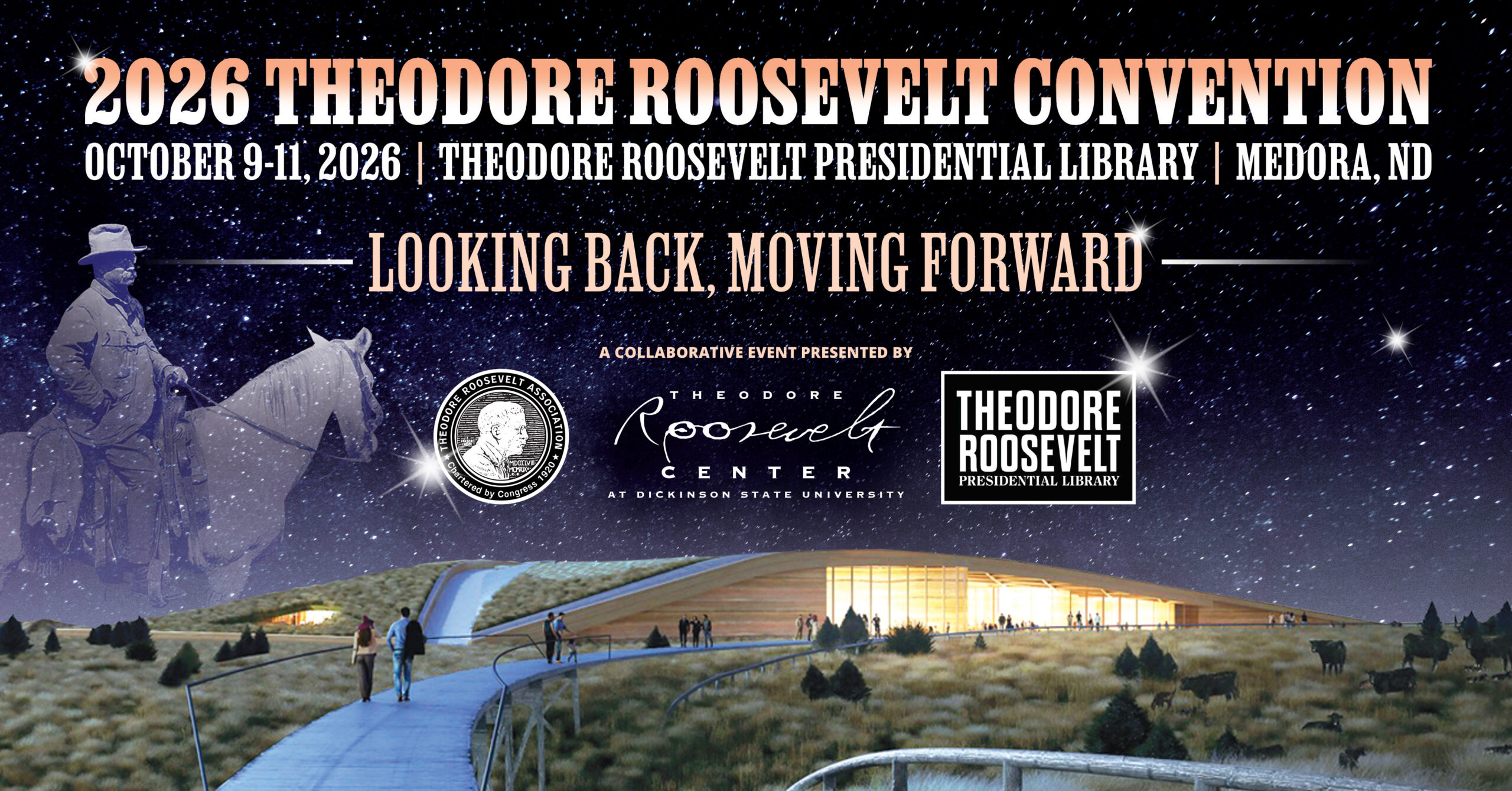 The Theodore Roosevelt Center hosts an annual symposium at Dickinson State University to explore various facets of Roosevelt’s life and career. Each symposium features a nationally-recognized keynote speaker, a series of lectures by prominent Roosevelt scholars, panel discussions, receptions, entertainment, and a field trip to places in North Dakota that were of importance to Roosevelt.