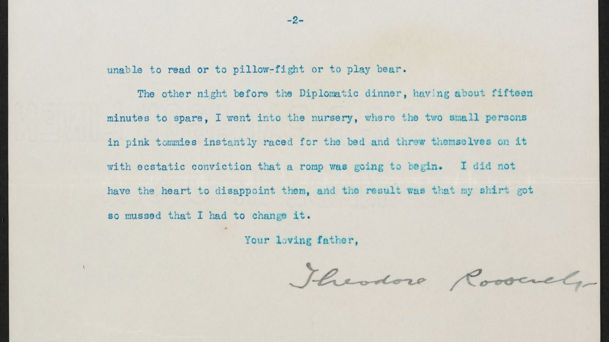 It was quickly apparent that the name Theodore Roosevelt could take on any number of meanings to any number of people. From my experiences cataloging his letters the past few weeks, I discovered a side of Roosevelt that may not be as well known; at least it wasn’t to me. I’ve had the opportunity to read fifteen years worth of letters he sent to his second son Kermit and have come to know Theodore Roosevelt the father.