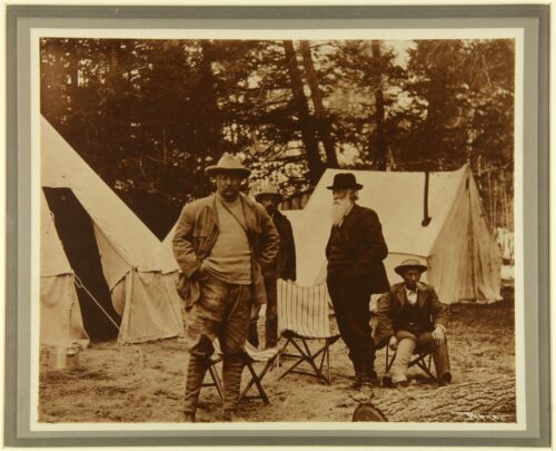 In April 1903, the two men toured Yellowstone Park together and Burroughs wrote about it in Camping and Tramping with Roosevelt, published in 1906. In 1907 Roosevelt publicly entered the nature-fakers controversy when he gave an interview and circulated an article defending Burroughs and stating his own views. Roosevelt esteemed Burroughs and called him “Oom John,” oom being an affectionate term meaning “uncle” in Dutch. John Burroughs continued to publish until his death in 1921.